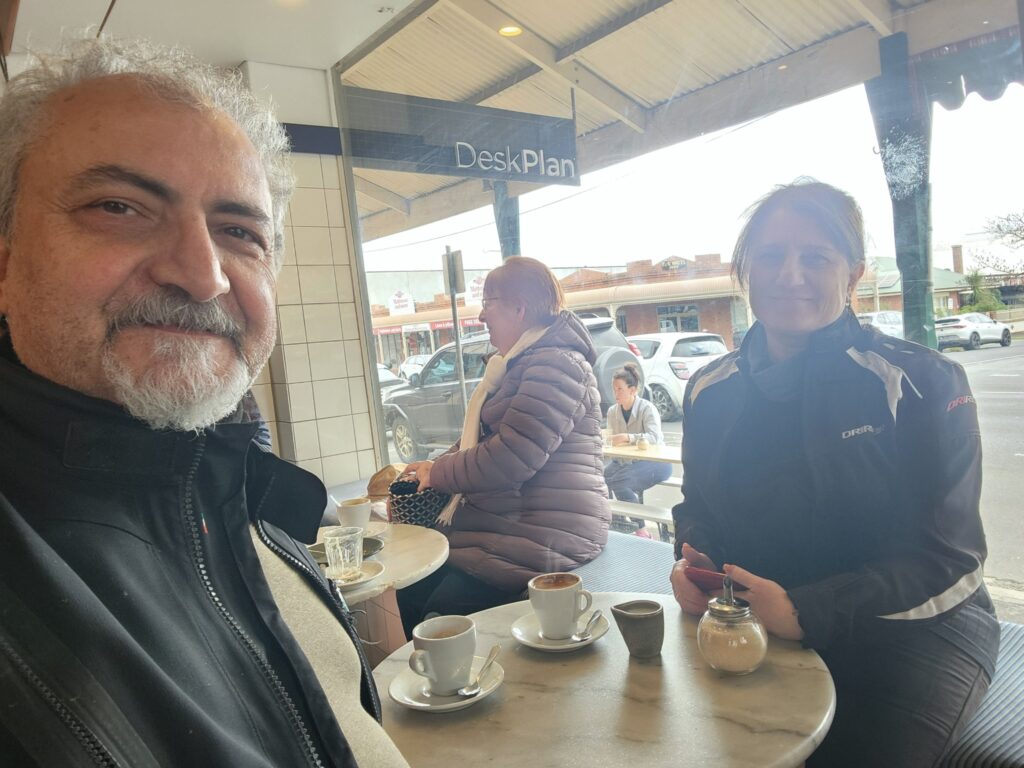 We woke up to an overcast morning, dark rain clouds drifting in the distance. They seemed to be heading sideways, so we weren’t too worried about a wet ride. Still, we decided to skip the scenic route home — no Daylesford or Mount Stirling detours this time. Straight home it would be.