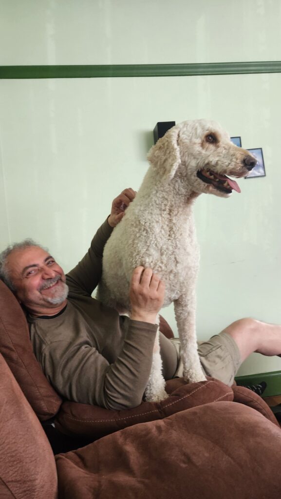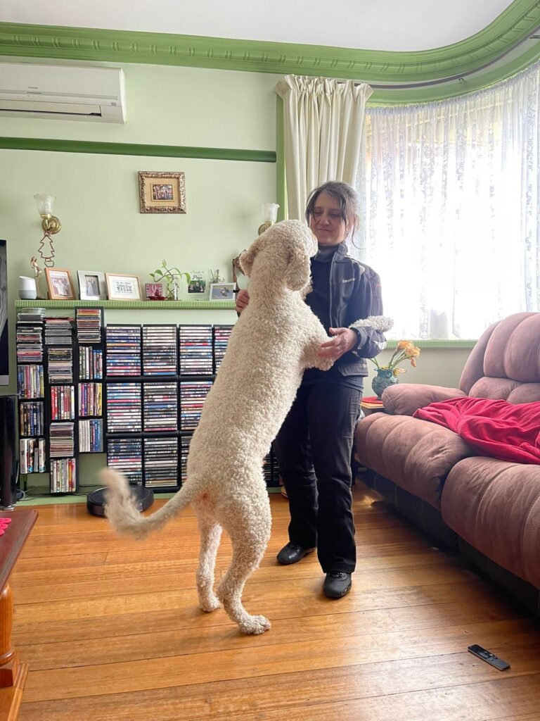 From there, it was a straight run home. Everyone was glad to see us, but no one matched Harley’s enthusiasm. My son’s labradoodle practically tackled us — all 35 kilograms of him — leaping up to Noune’s height on two legs and refusing to let go.
